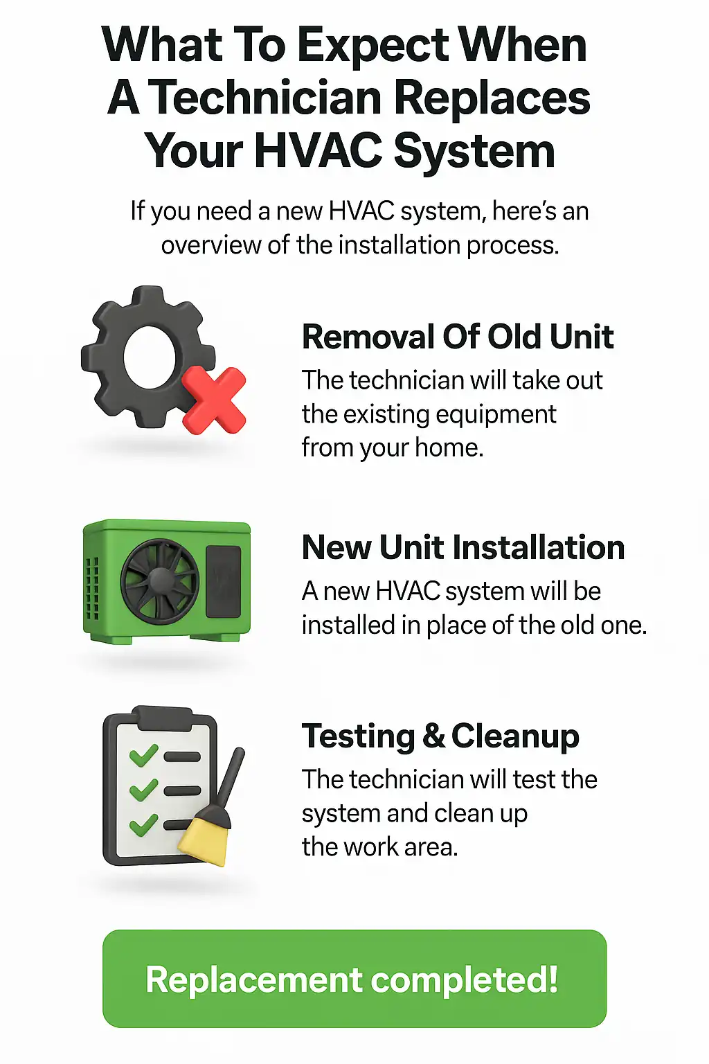 Replacing your HVAC system is a major home upgrade, but understanding the process helps reduce stress and ensures the best results. Here’s what typically happens when a professional technician handles your replacement: